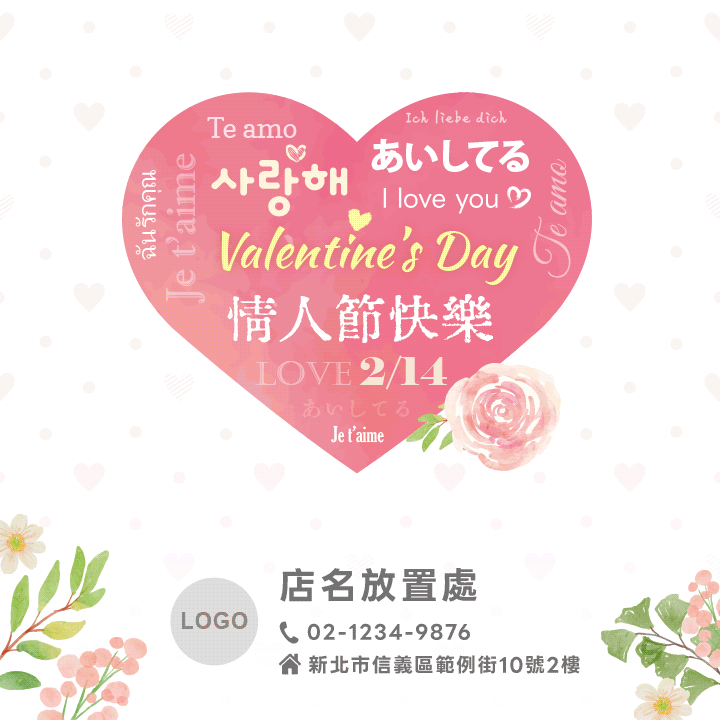 情人節公版文宣樣式提供給老闆參考。7、8、9為動態圖。